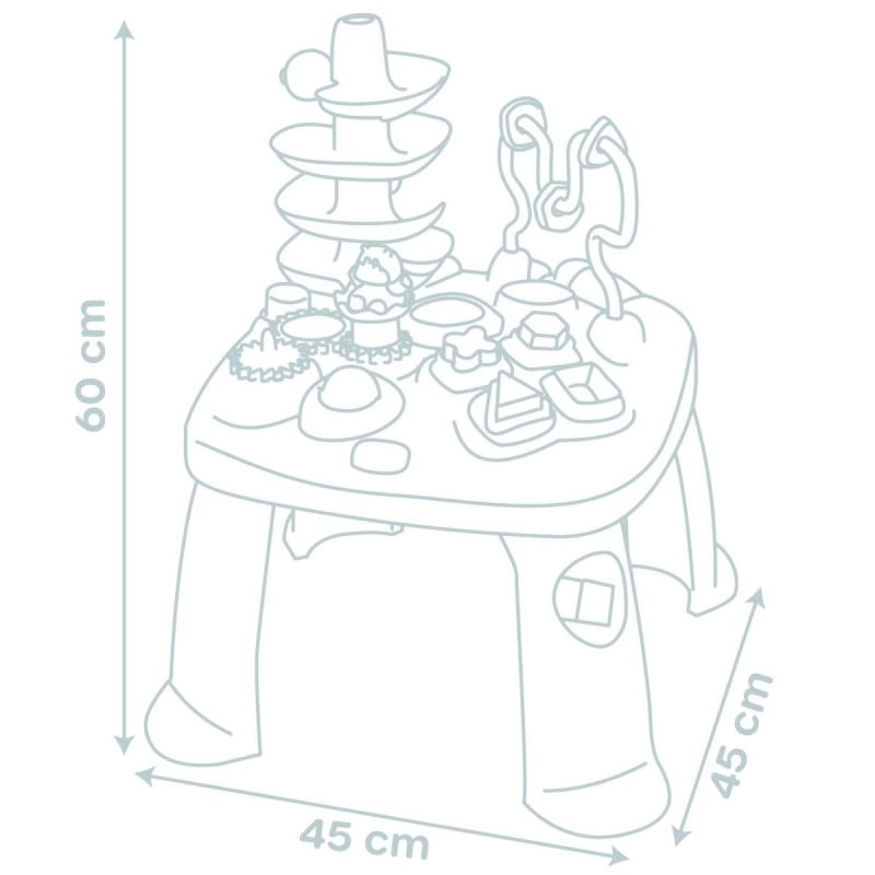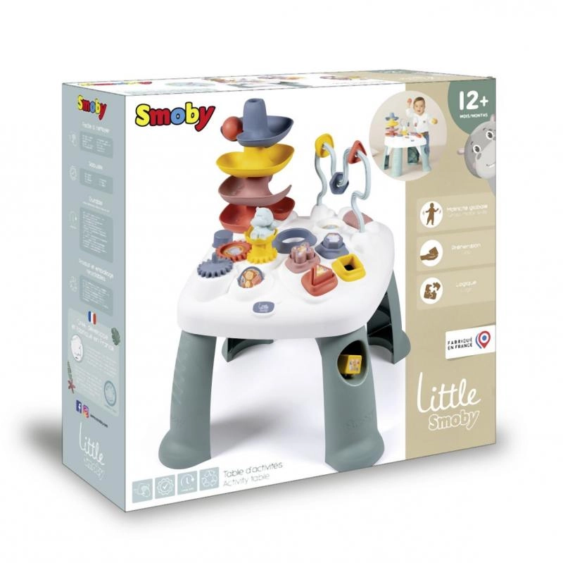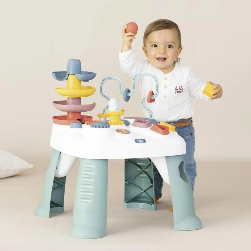 Rotaļu galds LITTLE SMOBY Activity ir radīts ziņkārīgiem mazuļiem no 12 mēnešu vecuma. Izturīga konstrukcija un stabilas kājas nodrošina drošas rotaļas, bet daudzveidīgās aktivitātes – no formu šķirošanas līdz bumbiņas palaišanai no torņa – stimulē maņas un uzlabo koncentrēšanos. Ideāli piemērots bērnistabai un rotaļu telpai.