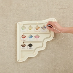 Tāfele ir veidota drošai ikdienas lietošanai – gludas malas, stabila stiprināšana pie sienas un pārdomāts aktivitāšu izkārtojums. Bērni trenē pacietību, koncentrēšanos un kustību koordināciju, dabiski attīstot prasmēs, kas svarīgas pirmsskolas vecumā.