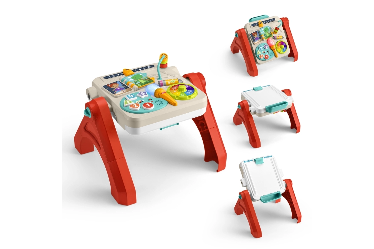 Atklājiet daudzpusīgu rotaļu galdiņu 4 vienā, kas aug kopā ar bērnu no sēdēšanas līdz patstāvīgai stāvēšanai un radošai darbošanās. Interaktīvais panelis māca skaitļus, krāsas un formas, piedāvā vairāk nekā 125 skaņas, frāzes un dziesmas un Smart Stages sistēmu satura pielāgošanai vecumam. Pateicoties saliekamām kājām un stāvošās tāfeles režīmam ar papīra klipsi un piederumu nodalījumu, tiek attīstītas bērnu muzikālās, maņu un radošās prasmes no 6 mēnešu vecuma.