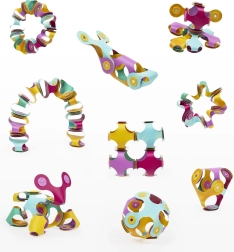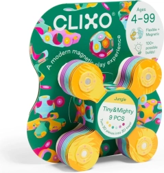 Clixo Tiny & Mighty Jungle ir rotaļīgs, ar origami iedvesmots magnētiskais konstruktors, kas apvieno vieglumu, elastību un drošību. Četr-lapu formas detaļas, pateicoties spēcīgiem magnētiem, viegli savienojas 2D un 3D konstrukcijās un nodrošina 360° rotāciju ar fiksāciju 24 pozīcijās maksimālai stabilitātei. Pasteļu krāsās ar grafisku apdruku jūs varēsiet veidot augus, dzīvniekus un pašu iztēlotus radījumus.