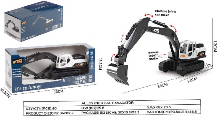 Šis detalizēti izstrādātais ekskavators apvieno metāla elementus ar kvalitatīvu plastmasu ilgai kalpošanai un reālistiskai spēlei. Kabīne griežas par 360°, strēle un metāla kauss ir pilnībā kustīgi, tāpēc bērni var viegli uzņemt un pārvietot materiālu.