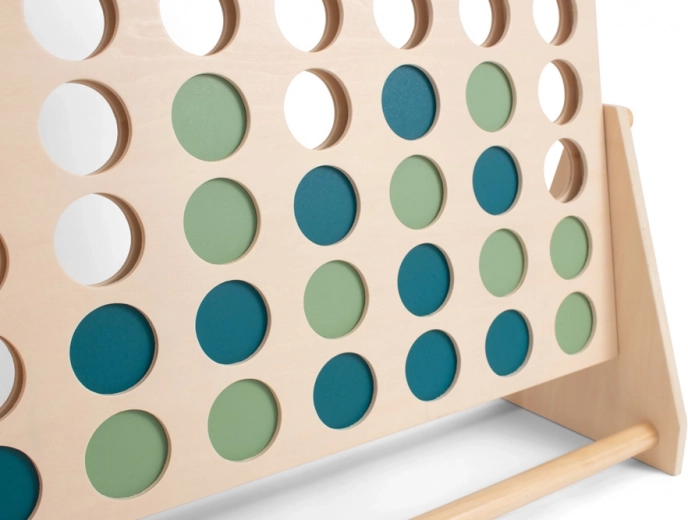 Mega spēle Četri rindā ir lieliska izvēle ģimenes vakariem, skolas pulciņiem un bērnu svinībām. Pateicoties lielajam rāmim 57 × 39 cm gājieni ir labi pārskatāmi, un žetonus ir ērti ievietot. Vienkāršie noteikumi un ātras partijas nodrošina izklaidi gan bērniem, gan pieaugušajiem.