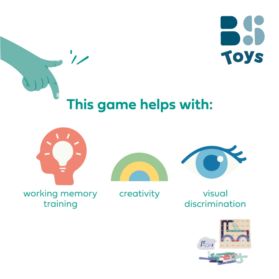 Atklājiet jautru un izglītojošu rotaļlietu, kas apvieno radošumu, smalko motoriku un formu un krāsu apguvi. GEOPLANK motivē bērnus no 4 gadu vecuma veidot savus rakstus vai pārkopēt paraugus, nodrošinot stundām ilgu jēgpilnu izklaidi.
