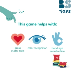 Atklājiet universālu izklaidi bērniem un pieaugušajiem: komplekts ar 8 krāsainiem tekstila maisiņiem ar smilšu pildījumu piedāvā līdz pat 6 spēļu variantiem. Piemērots 1–8 spēlētājiem no 3 gadu vecuma, spēles viegli pielāgojamas vecumam un telpai. Attīsta rupjo motoriku, roku–acu koordināciju un krāsu atpazīšanu.