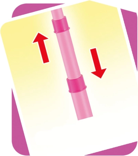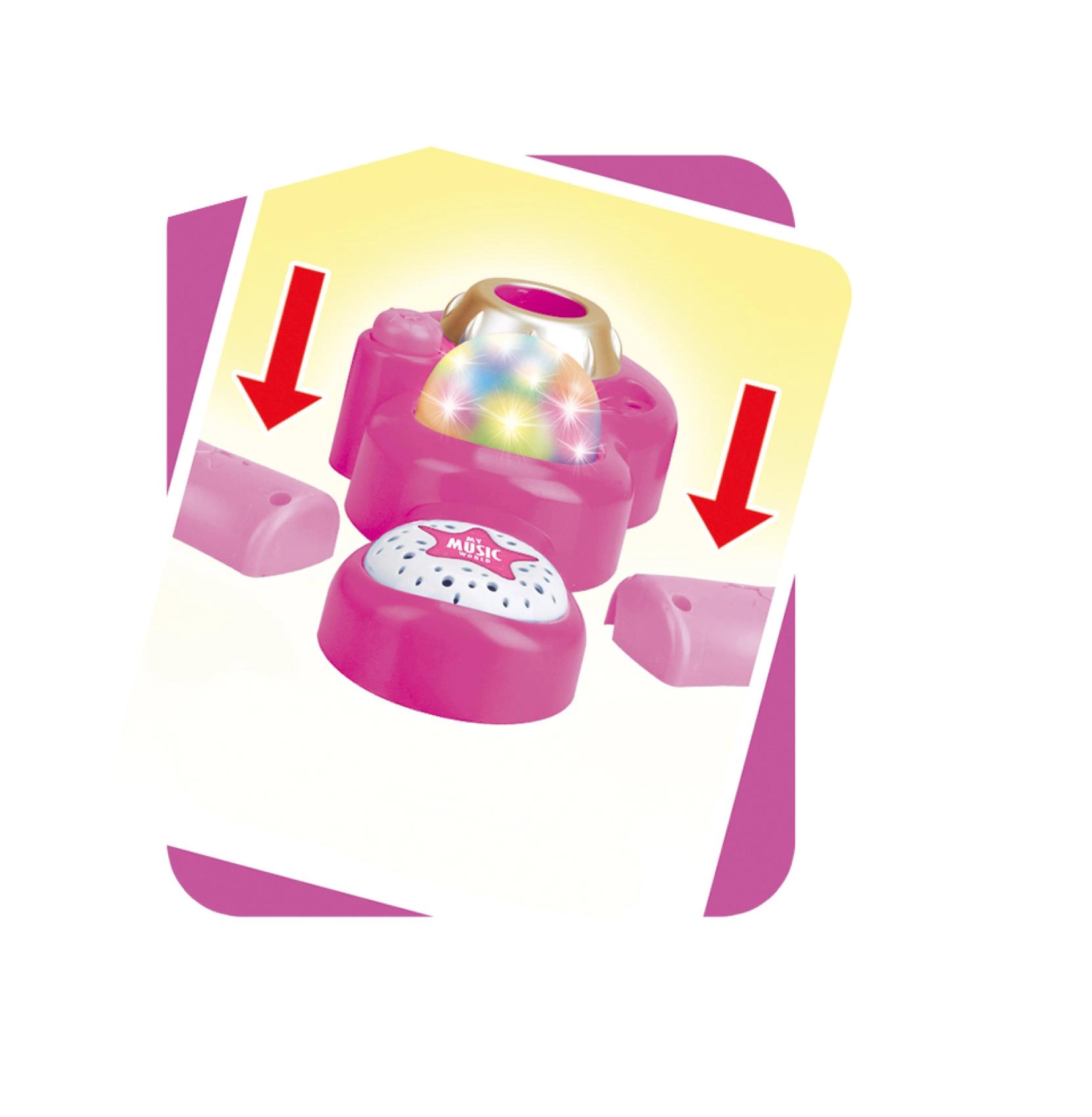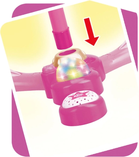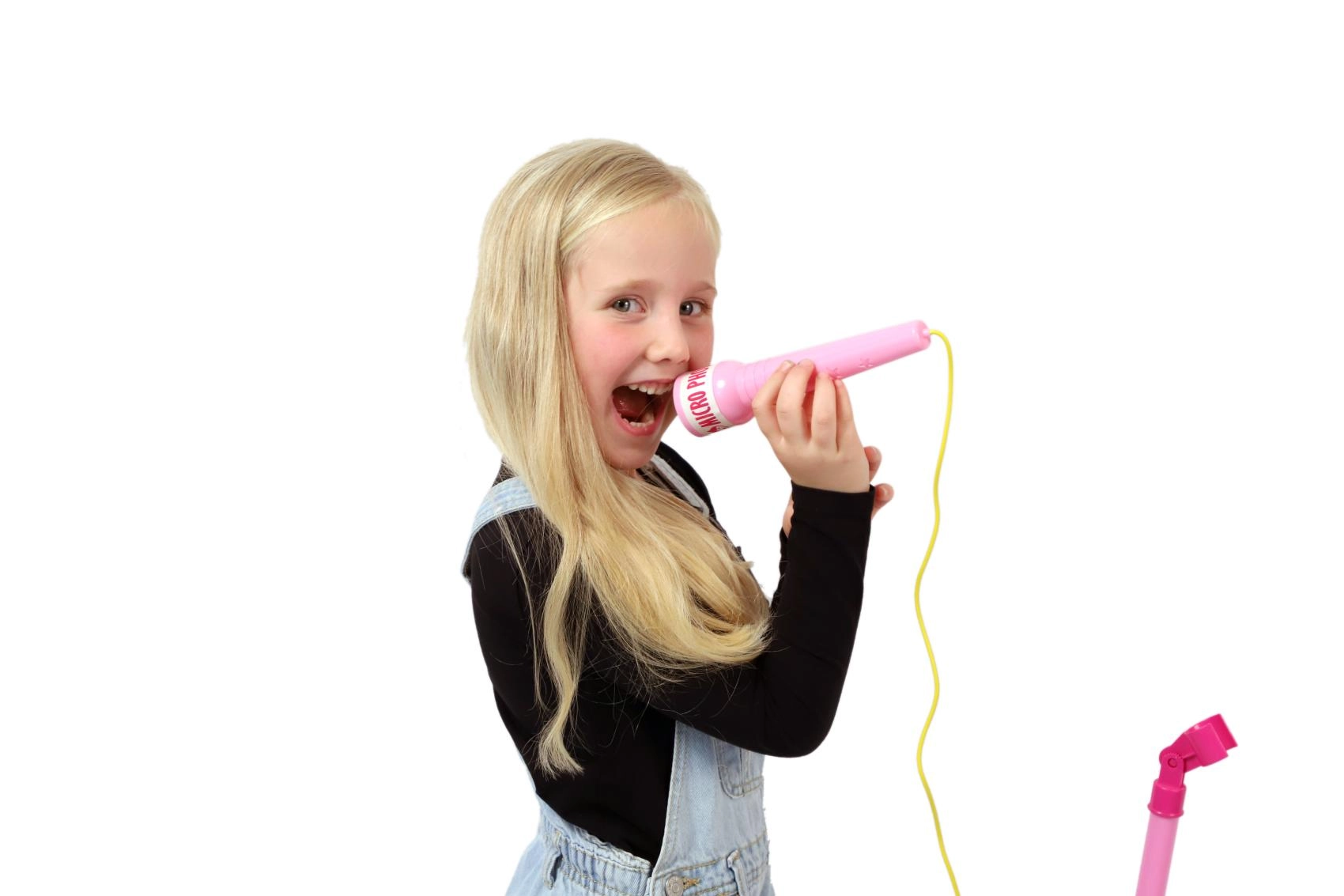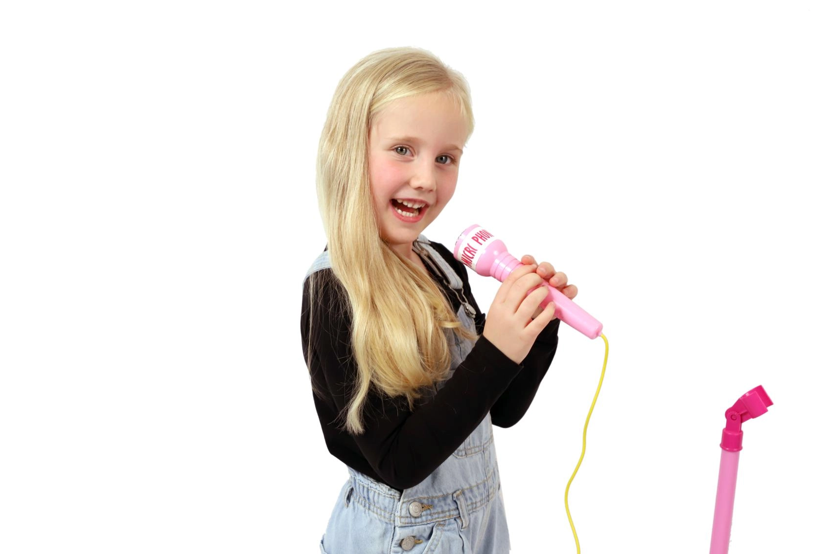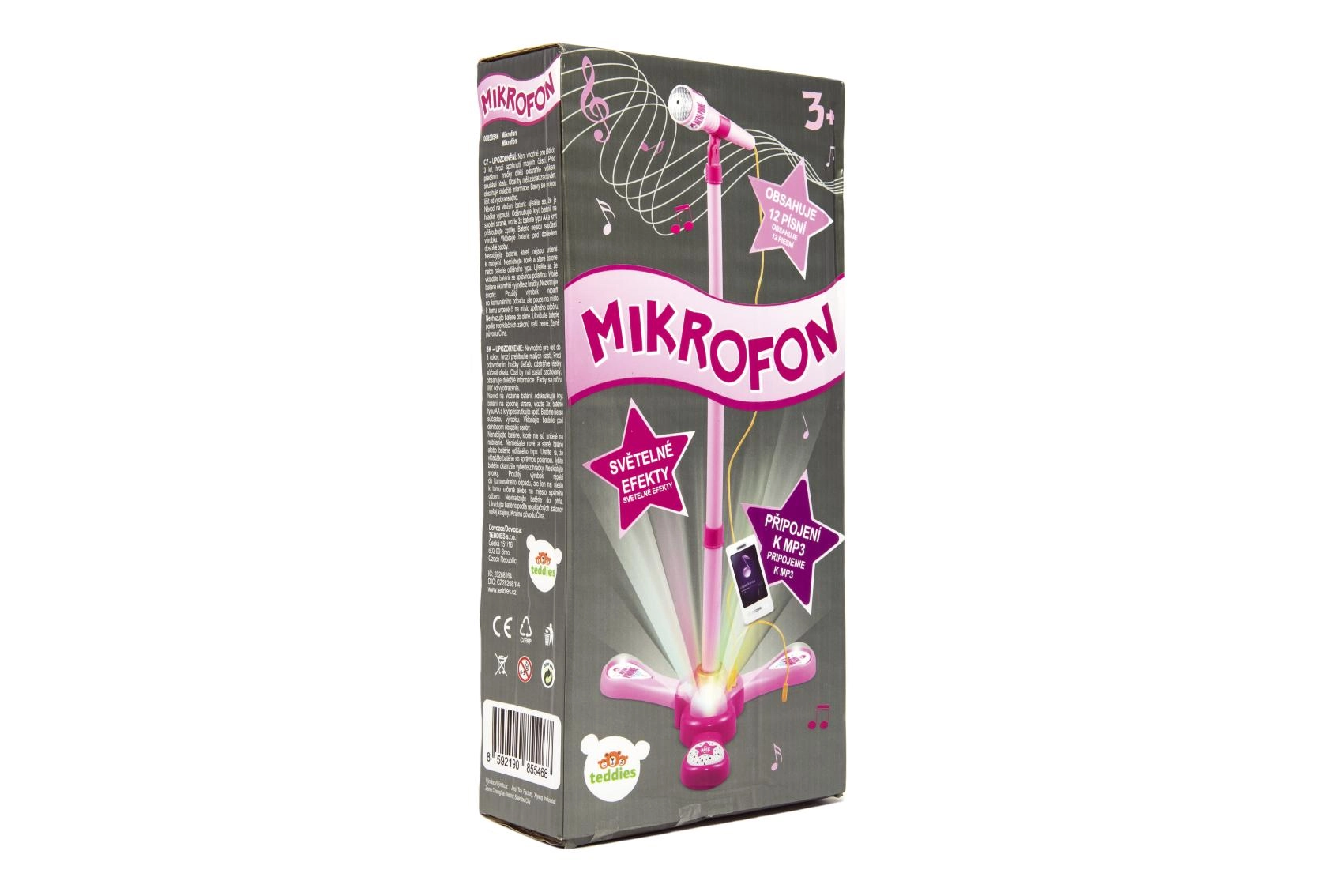 Rozā karaoke mikrofons uz statīva pārvērtīs jebkuru bērnu istabu par skatuvi. Tas piedāvā 12 iebūvētas dziesmas, krāsainus gaismas efektus un iespēju pievienot MP3 vai mobilo telefonu. Pateicoties regulējamam augstumam 40–80 cm, tas aug līdzi bērnam un ir ideāli piemērots mazajiem dziedātājiem no 3 gadu vecuma.