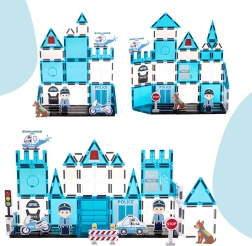 WOOPIE magnētiskie klucīši ļauj bērniem viegli savienot paneļus un būvēt savu iecirknī, garāžas transportlīdzekļiem un nosēšanās laukumu helikopteram. Spēcīgie magnēti nodrošina drošu savienojumu, tādēļ būves ir stabilas un izturīgas spēles laikā.
