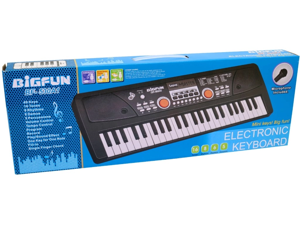 Šī bērnu elektroniskā klaviatūra ir lielisks pirmais solis mūzikas pasaulē. Pateicoties 49 taustiņiem un bagātīgām iespējām, bērni apgūs spēles pamatus, attīstīs muzikālo dzirdi, ritmu un radošumu. Komplektā ir mikrofons, tāpēc spēlētās melodijas var uzreiz pavadīt ar dziedāšanu.