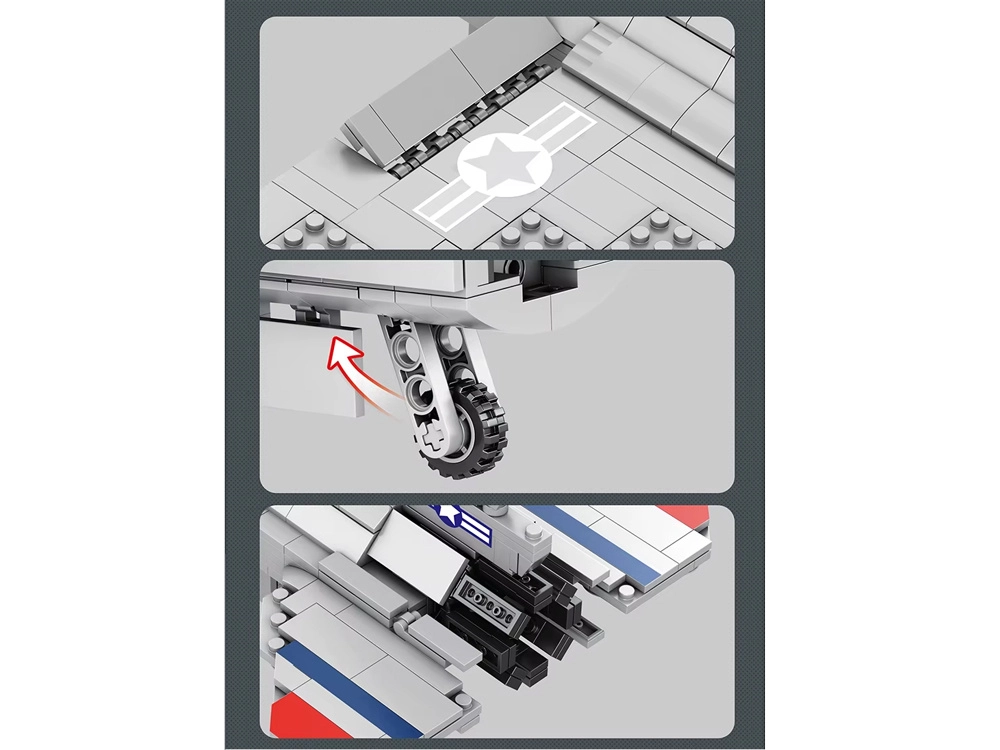 Komplektā ir dažādi raķešu tipi un spārnu apakšas iekaramie turētāji, kurus var viegli piestiprināt, lai izveidotu savu bruņojuma konfigurāciju. Atveramā šasija piešķir modelim autentiskumu, bet stends ļauj efektīgi to prezentēt uz plaukta vai rakstāmgalda.
