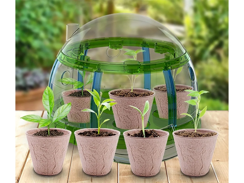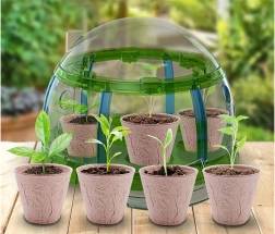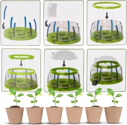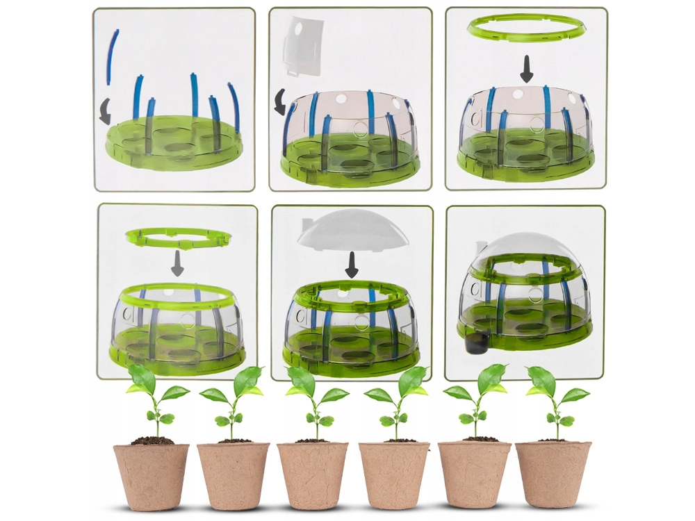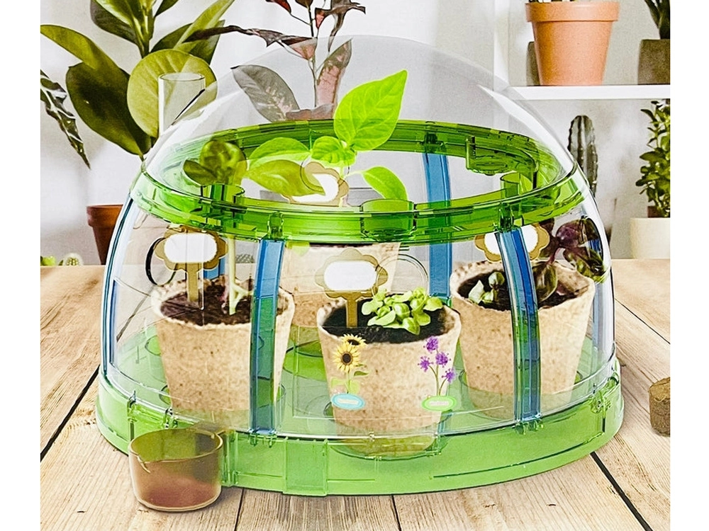 Izveidojiet mājās mazu dārziņu un vērojiet attīstību no sēkliņas līdz pieaugušam augam. Dekoratīvā mini siltumnīca ar atveramu jumtu un durtiņām pie katra podiņa nodrošina ideālus apstākļus dīgšanai. Bioloģiski noārdāmos podiņus var pārstādīt tieši augsnē – saudzīgi dabai un bez nekārtības.
