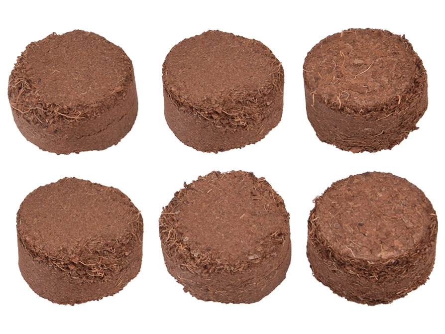 - Kokosriekstu briketes, bioloģiski noārdāmi podiņi
