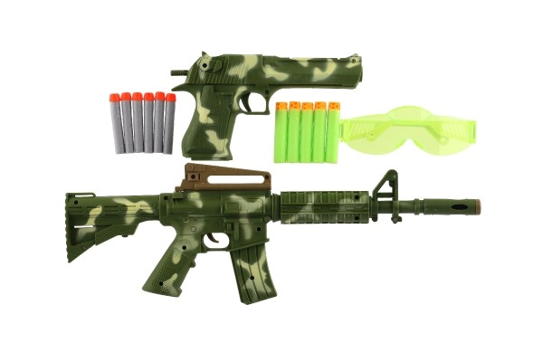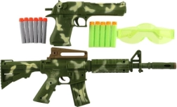 Šis komplekts mazajiem šāvējiem piedāvā visu nepieciešamo aktīvai, bet drošai spēlei. Šautene ir aprīkota ar noņemamu tēmēkli precīzākai mērķēšanai, pistole piemērota ātrai darbībai, bet putu lodes nodrošina drošu lietošanu. Komplektā iekļautās aizsargbrilles padara spēli vēl drošāku.