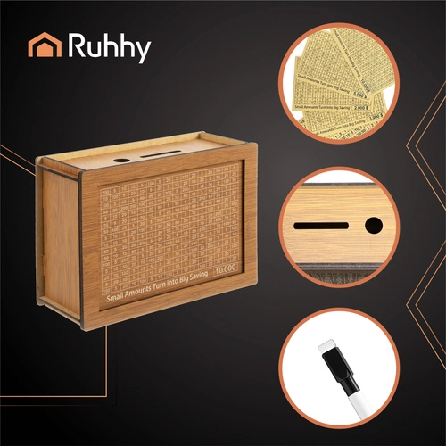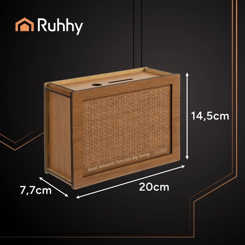 Meklējat veidu, kā izkopt finanšu ieradumus un krāt ar smaidu? Šī kvalitatīvā koka krātuve RUHHY ar maināmām kartītēm un uzdruku “10 000” pārvērš naudas atlikšanu par jautru izaicinājumu. Vērojiet savu progresu, atzīmējiet izpildītās summas, un pateicoties noslēgtajai konstrukcijai pie uzkrājuma varēsiet tikt tikai pēc mērķa sasniegšanas. Lieliska dāvana un praktisks finanšu pratības palīgs bērniem un pieaugušajiem.
