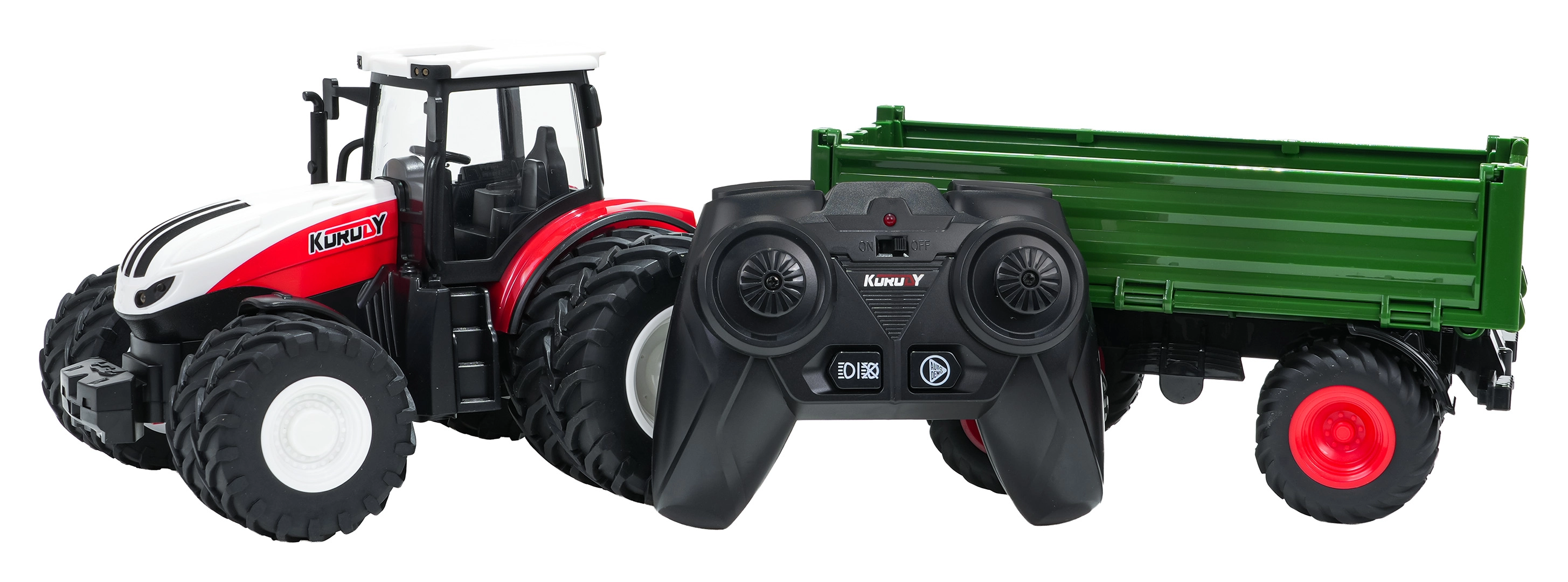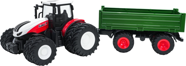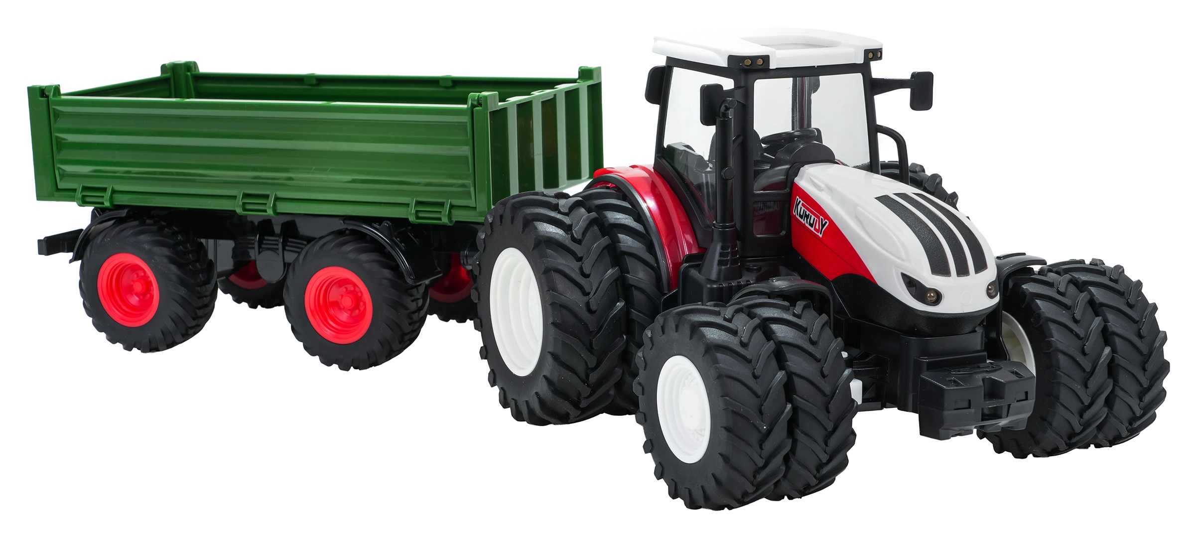 Atklājiet realistu RC traktoru ar piekabi mērogā 1:24 bērniem no 3 gadu vecuma. Tas piedāvā vadību visos virzienos, 2,4 GHz stabilam signālam, lielus gumijas riteņus lieliskai saķerei un gaismas efektus. Piekabi var atvienot, manuāli izcelt un tai ir noņemamas bortu malas. Komplektā ietilpst uzlādējams akumulators 3,7 V un USB kabelis; pults darbojas ar 2× AAA baterijām (nav iekļautas).