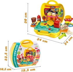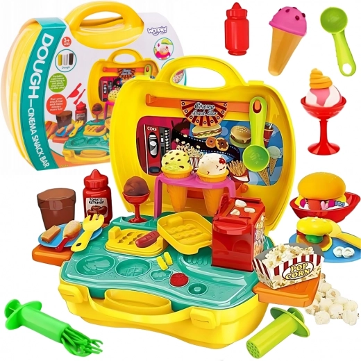 Ar šo pārnēsājamo komplektu bērni acumirklī izveidos savu uzkodu bāru – pietiek atvērt koferīti un sākt veidot. Pateicoties ērtai visu detaļu glabāšanai, komplekts ir ideāls lietošanai mājās, pie vecvecākiem vai ceļojumos. Krāsains un elastīgs plastilīns ir viegli formējams un patīkams pieskārienam.