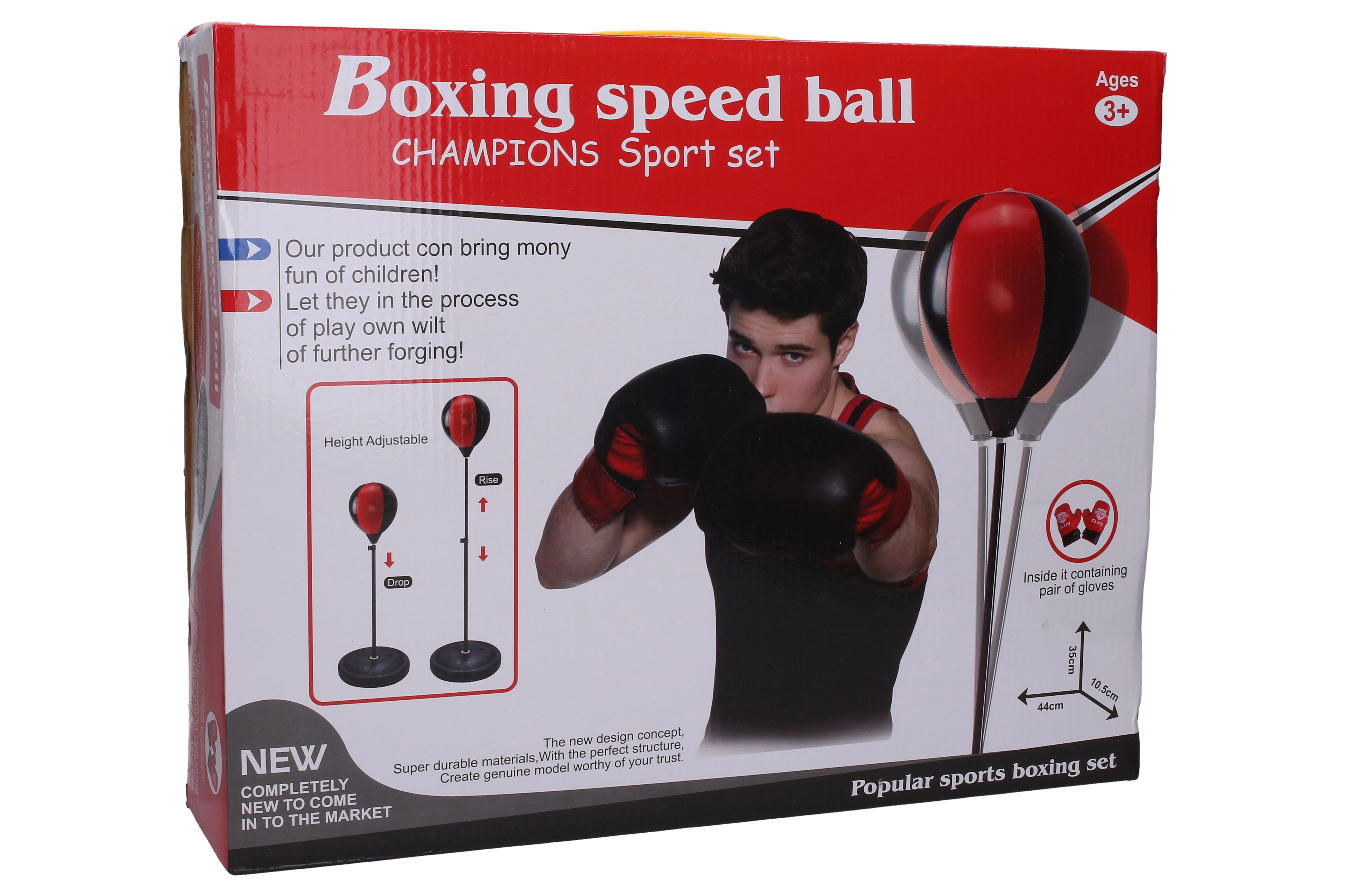 Šis praktiskais boksa komplekts ir lieliska izvēle mājas treniņiem, ātruma, precizitātes un koordinācijas attīstīšanai. Pateicoties regulējamam augstumam 69–109 cm, to viegli pielāgot gan bērniem, gan pieaugušajiem. Komplektā ietilpst boksa cimdi, pilns montāžas komplekts un pumpis ātrai sagatavošanai darbam.
