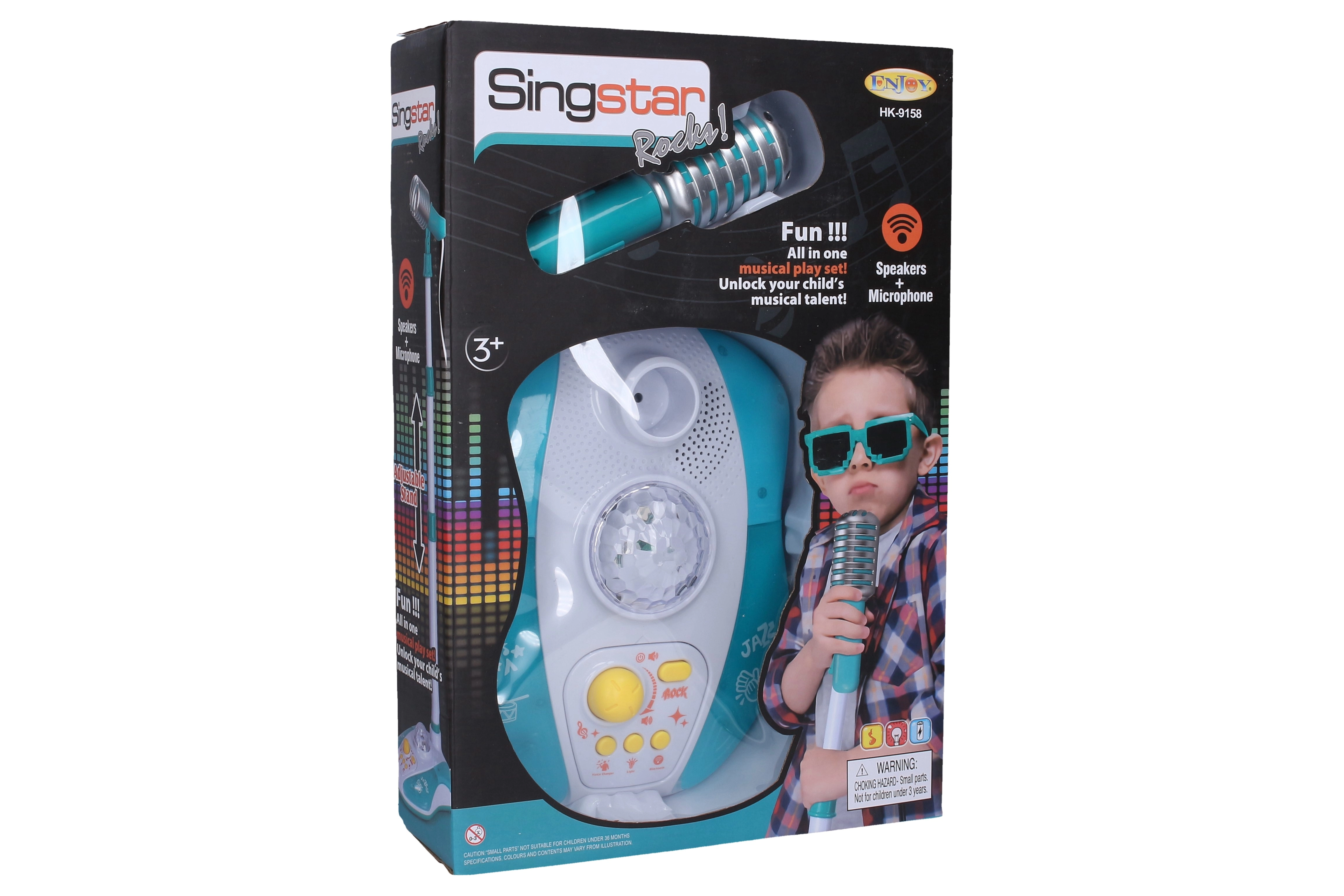 Šis bērnu mikrofons ar statīvu ir ideāli piemērots mazajiem dziedātājiem un izpildītājiem. Pateicoties Bluetooth, varat atskaņot iemīļotas dziesmas tieši no tālruņa, bet 9 gaismas efekti radīs īstu skatuves atmosfēru. Regulējamais statīva augstums nodrošina ērtu lietošanu dažāda vecuma bērniem.