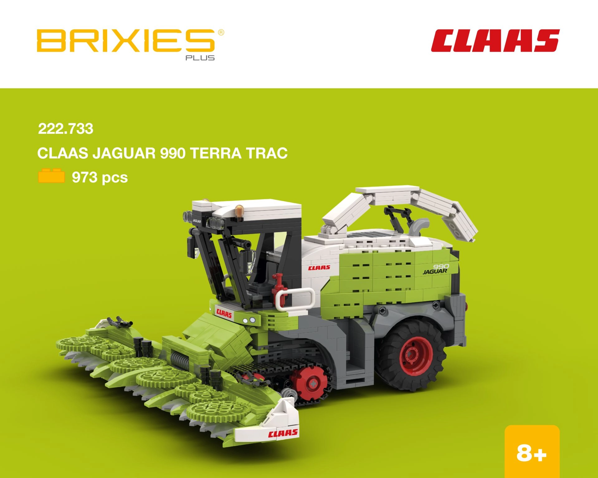 Šis konstruktors piedāvā reālistisku skārsējmašīnas CLAAS JAGUAR 990 TERRA TRAC modeli ar kāpurķēžu šasiju. Pēc salikšanas aptuvenie izmēri ir 31,4 × 15,4 × 32,7 cm (g × a × p). Sērijas BRIXIES Plus lielāki kluči nodrošina ērtu būvēšanu un ir saderīgi ar citu tipu klucīšu konstruktoriem. Iepakojumā iekļautas arī detalizētas salikšanas instrukcijas.