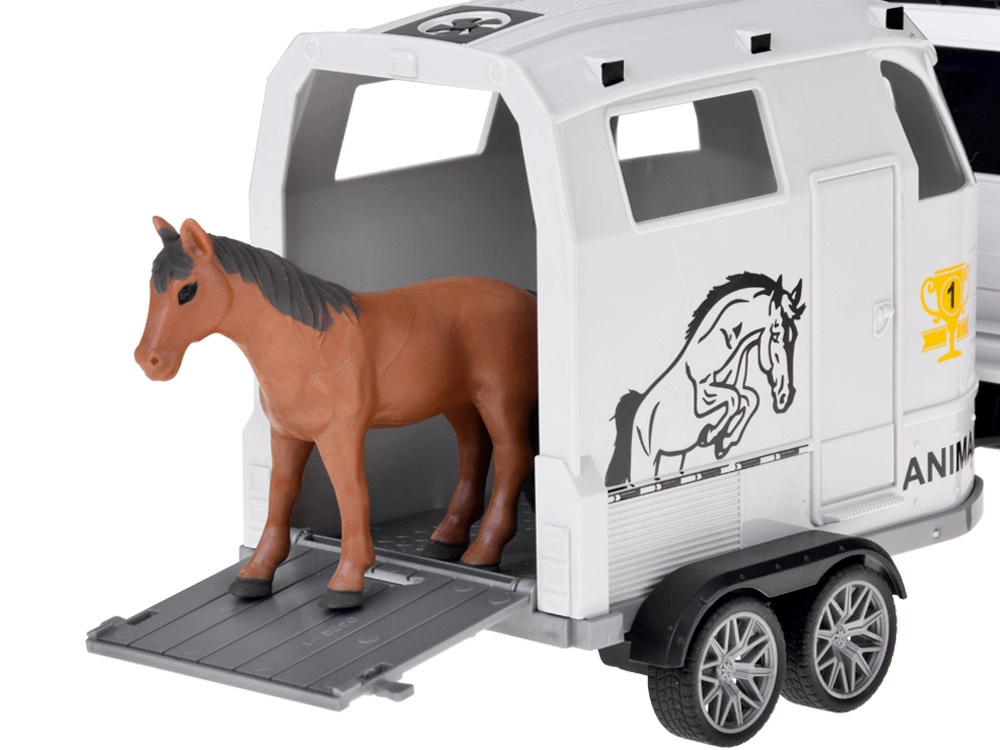 Zirgu piekabei ir logi, zirga grafika un, pats galvenais, atverama aizmugurējā rampa ērtai figūriņas iekraušanai un izkraušanai. Pateicoties atvienojamam sakabes āķim, piekabi var viegli pievienot vai atvienot, paplašinot spēles scenārijus – no fermas līdz jāšanas sacensībām.