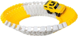 Izveidojiet savu būvniecības tematikas apli – pateicoties elastīgajiem, savienojamajiem posmiem var salikt taisnes, līkumus, cilpas un tiltu. Bērni var nepārtraukti mainīt konfigurācijas, izmēģināt jaunas trases un papildināt tās ar zīmēm, barjerām un kokiem. Košas krāsas, funkcionāli piederumi un mašīnīte ar bateriju nodrošina dinamisku un aizraujošu spēli.