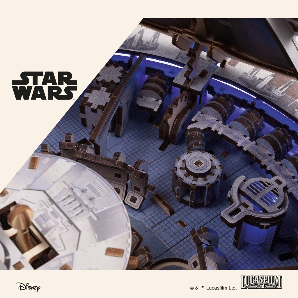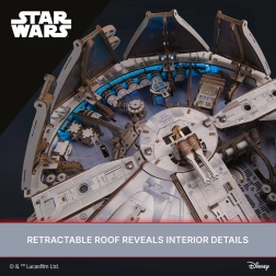 Izbaudi vienas no slavenākajām kino vēstures kuģu būvi. Ugears Millennium Falcon sajūsmina ar smalkām interjera un eksterjera detaļām, augstu izgatavošanas kvalitāti no augstas blīvuma kokšķiedru plātnes un gudriem mehāniskiem risinājumiem. Zilās LED gaismas rada hiperdzinēja efektu un piešķir modelim autentisku atmosfēru. Ideāli aizrautīgiem būvētājiem, kolekcionāriem un Star Wars faniem.