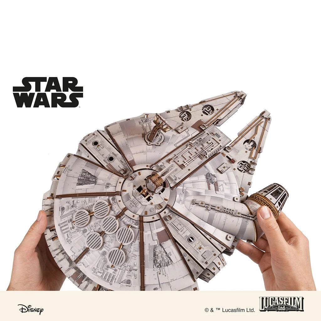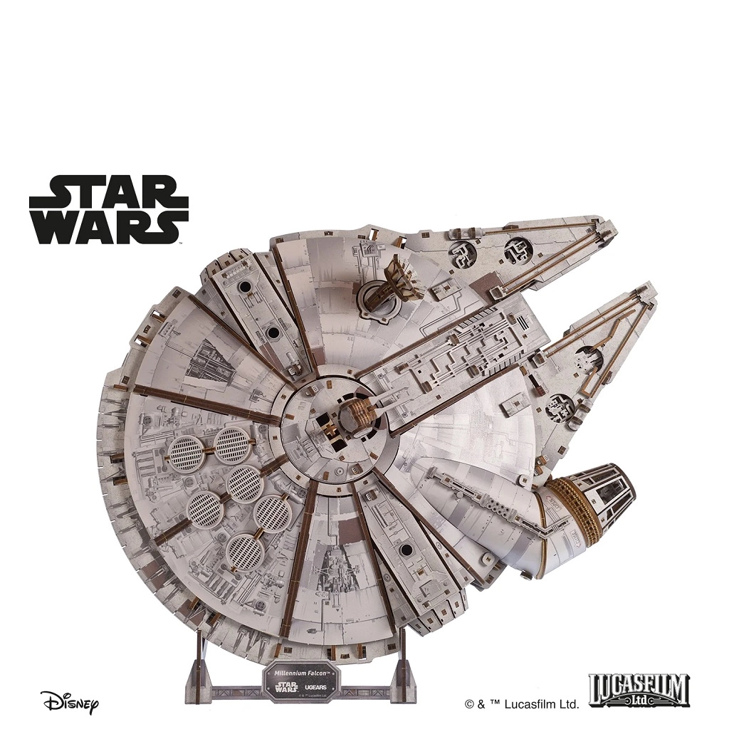 Uzcel ikonisko Star Wars kosmosa kuģi – Millennium Falcon no Ugears. Šis detalizētais 3D modelis mērogā 1:75 piedāvā zilas LED gaismas, kas simulē hiperdzinēju, atveramu jumtu, kravas nodalījumu ar rampu, kustīgus artilērijas torņus un antenu ar 360° rotāciju. Montāža notiek bez līmes un instrumentiem, bet krāsainie elementi piešķir modelim reālistisku izskatu.