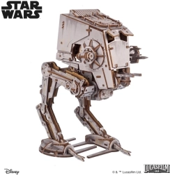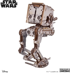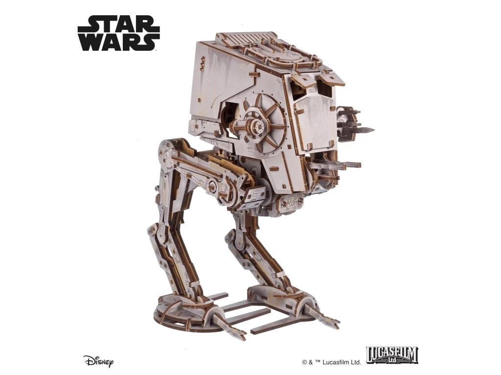 Salieciet ikonisko STAR WARS AT-ST staigātāju kā precīzu 3D koka modeli no Ugears. Puzlei ir uztinams mehāniskais piedziņas mehānisms, rotējoša kabīne, kustīgi blasteri un granātmetējs, kā arī atverami lūki. Pateicoties metāla elementiem stabilitātei, modelis bez līmes un instrumentiem spēj noiet līdz pat 80 cm.