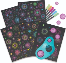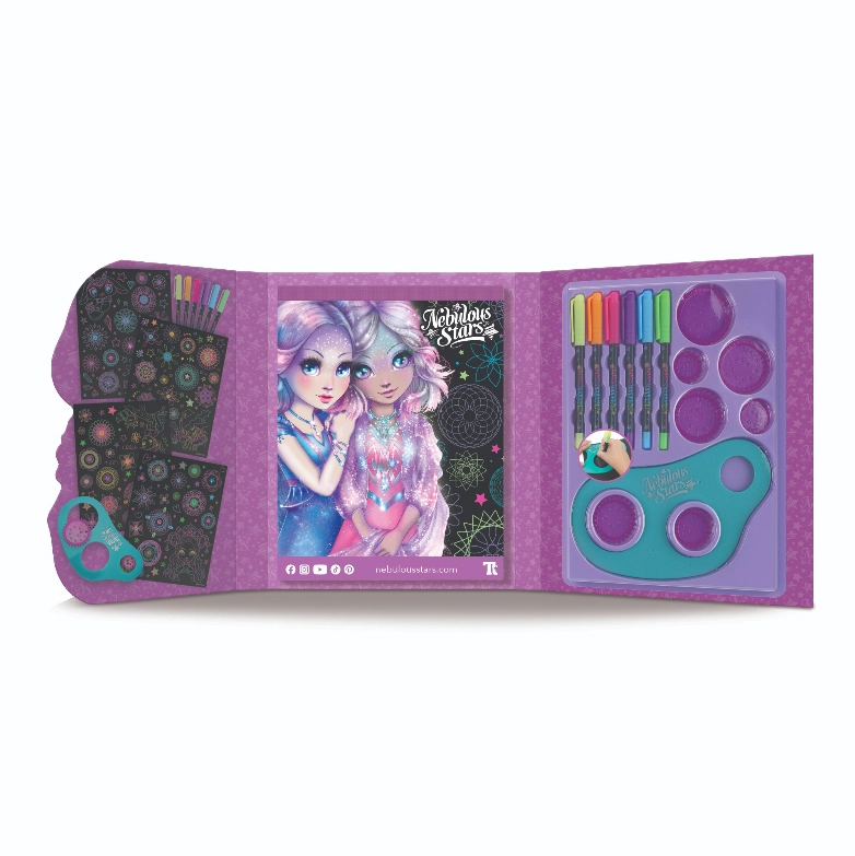 Atklājiet zīmēšanas burvību ar Nebulous Stars komplektu zvaigžņu spirāļu veidošanai. Komplektā ir 48 melnas lapas, spirālveida šablons ar 7 ratiņiem, 6 neona gēla pildspalvas un uzlīmes nebeidzamai radošai izklaidei. Uz 36 ilustrētām lapām varat krāsot un papildināt košas spirāles – ideāli radošuma un sīkās motorikas attīstībai.