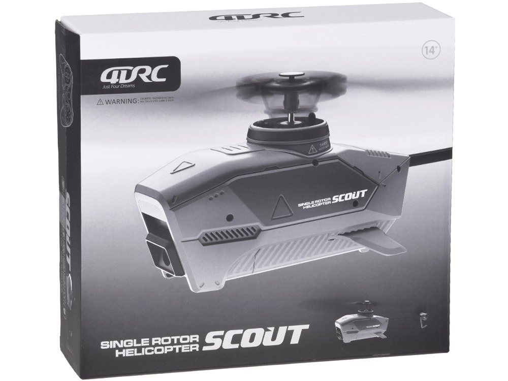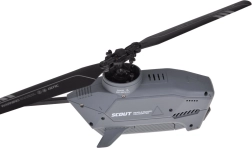 RC helikopters SCOUT izceļas ar futūristisku dizainu, elegantā pelēkā krāsā un aerodinamiskām līnijām. Dubultais galvenais rotors kopā ar astes rotoru nodrošina stabilu hoveringu un plūdenas manevrus, tādēļ tas ir lieliska izvēle gan bērniem, gan pieaugušajiem iesācējiem, kuri vēlas ātri iegūt pārliecību gaisā.