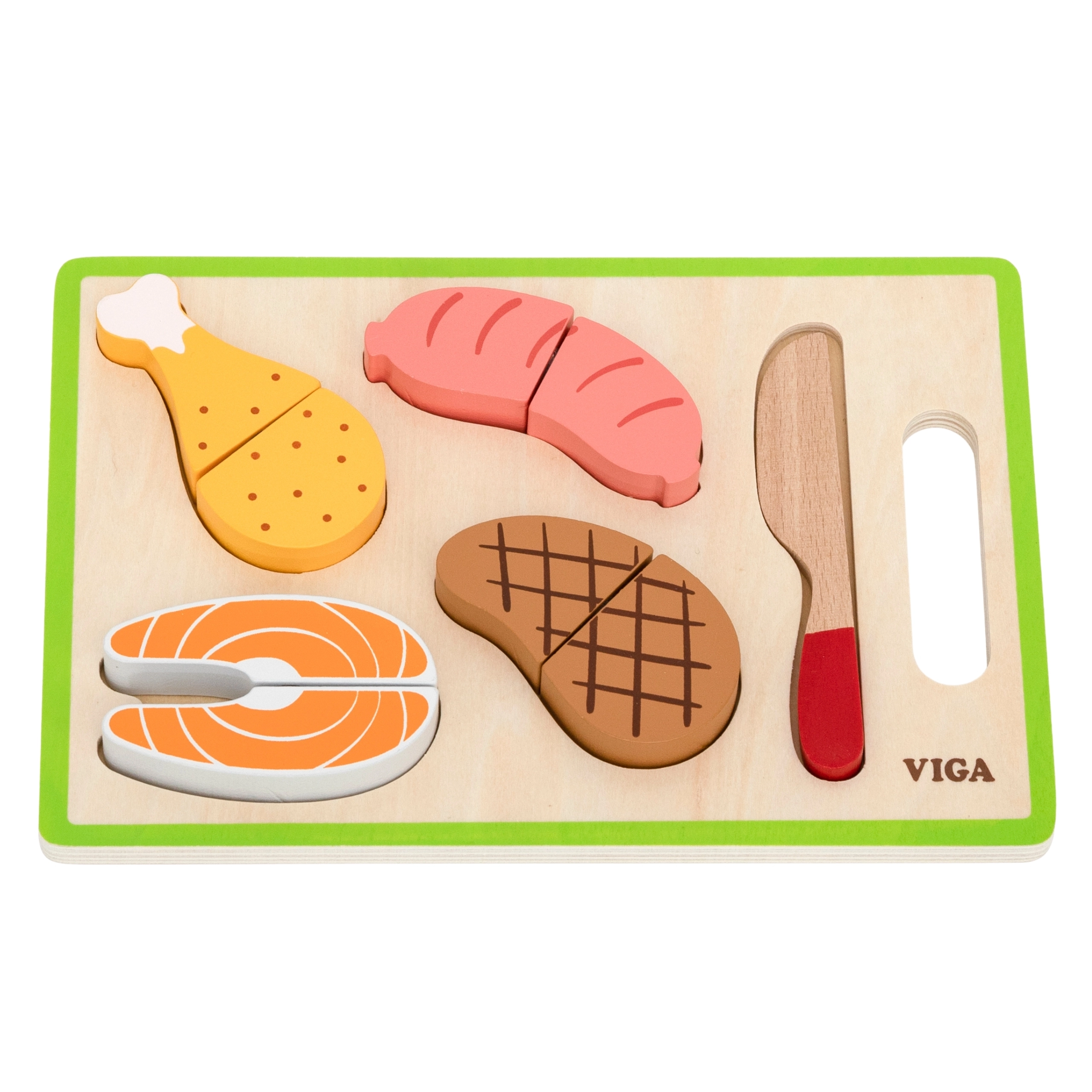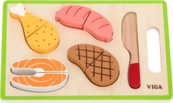 Atklājiet radošu spēli bērnu virtuvē – VIGA koka gaļas griešanas komplekts. Pateicoties elementiem, kas savienoti ar līplenti, produktus var atkal un atkal “sagriezt” un salikt no jauna, kas veicina sīko motoriku, roku–acu koordināciju un radošu lomu spēli. Komplekts ir ideāls papildinājums bērnu virtuvēm, tam ir reālistisks izskats un tas ir piemērots jau no 18 mēnešu vecuma.