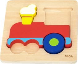 - koka Montessori ieliktņu puzle ar vilciena motīvu