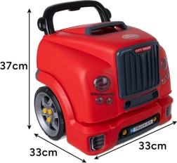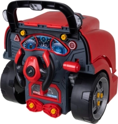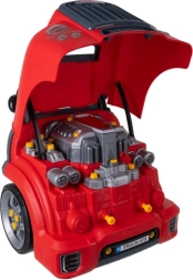 Komplektā ietilpst pilna mehāniskā darbnīca bērniem no 3 gadu vecuma: sarkana automašīna ar atveramu pārsegu, detalizēts “motors”, vadības elementi un bērnu instrumenti. Pateicoties skrūvēm, riteņiem un kustīgām detaļām, bērni trenē koordināciju un saprot transportlīdzekļa darbības pamatus drošā un aizraujošā vidē.