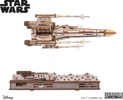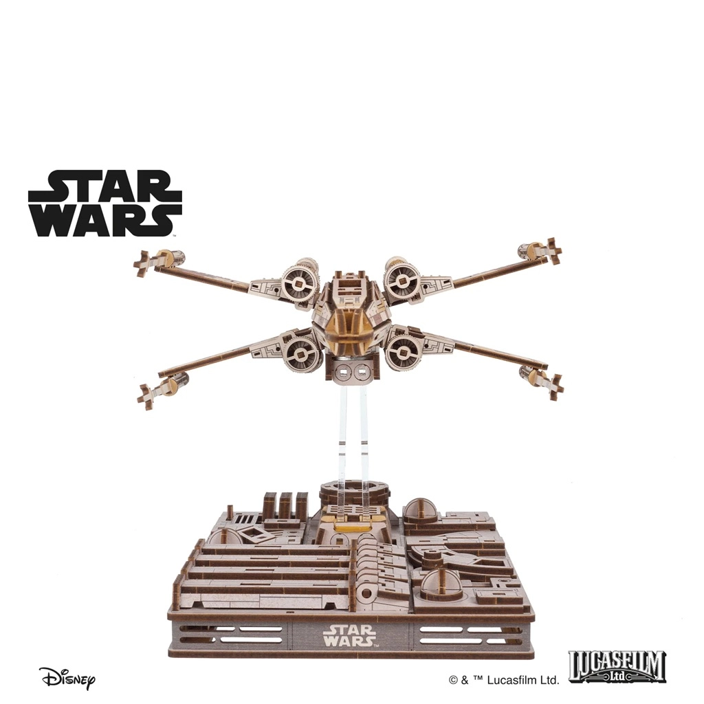Salieciet ikonisko iznīcinātāju STAR WARS X-Wing Luka Skaivokers kā koka 3D modeli ar mehānisku pamatni, kas simulē lidojuma manevrus. Modelim ir atverams kabīnes pārsegs, S-foil spārni kaujas pozīcijā, magnētiska stiprināšana un savietojamība ar TIE iznīcinātāju, lai izveidotu episku Nāves zvaigznes ainu.