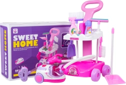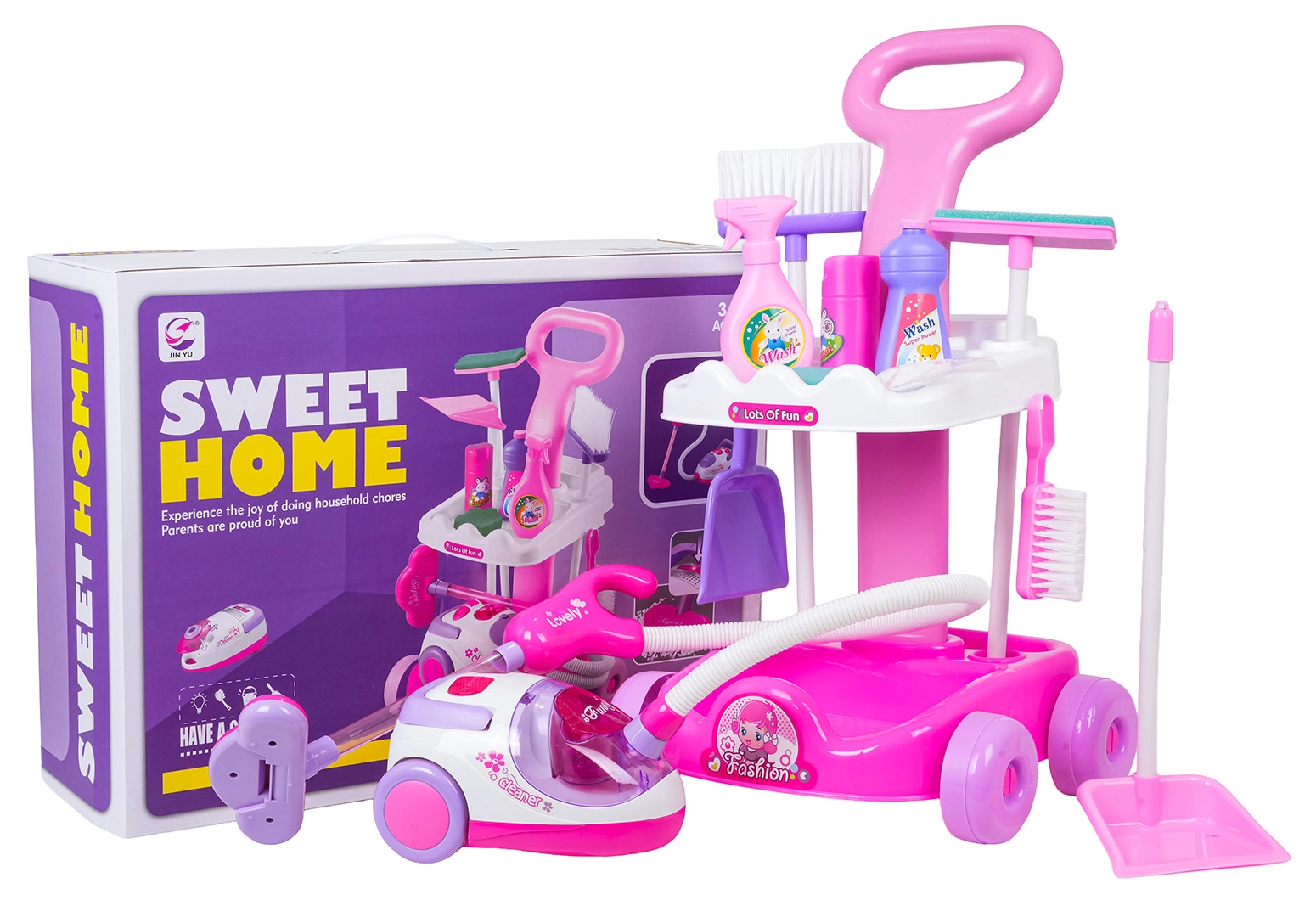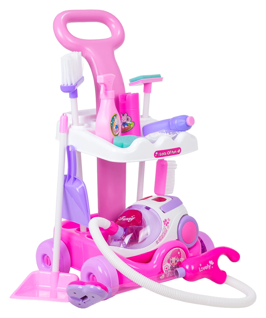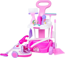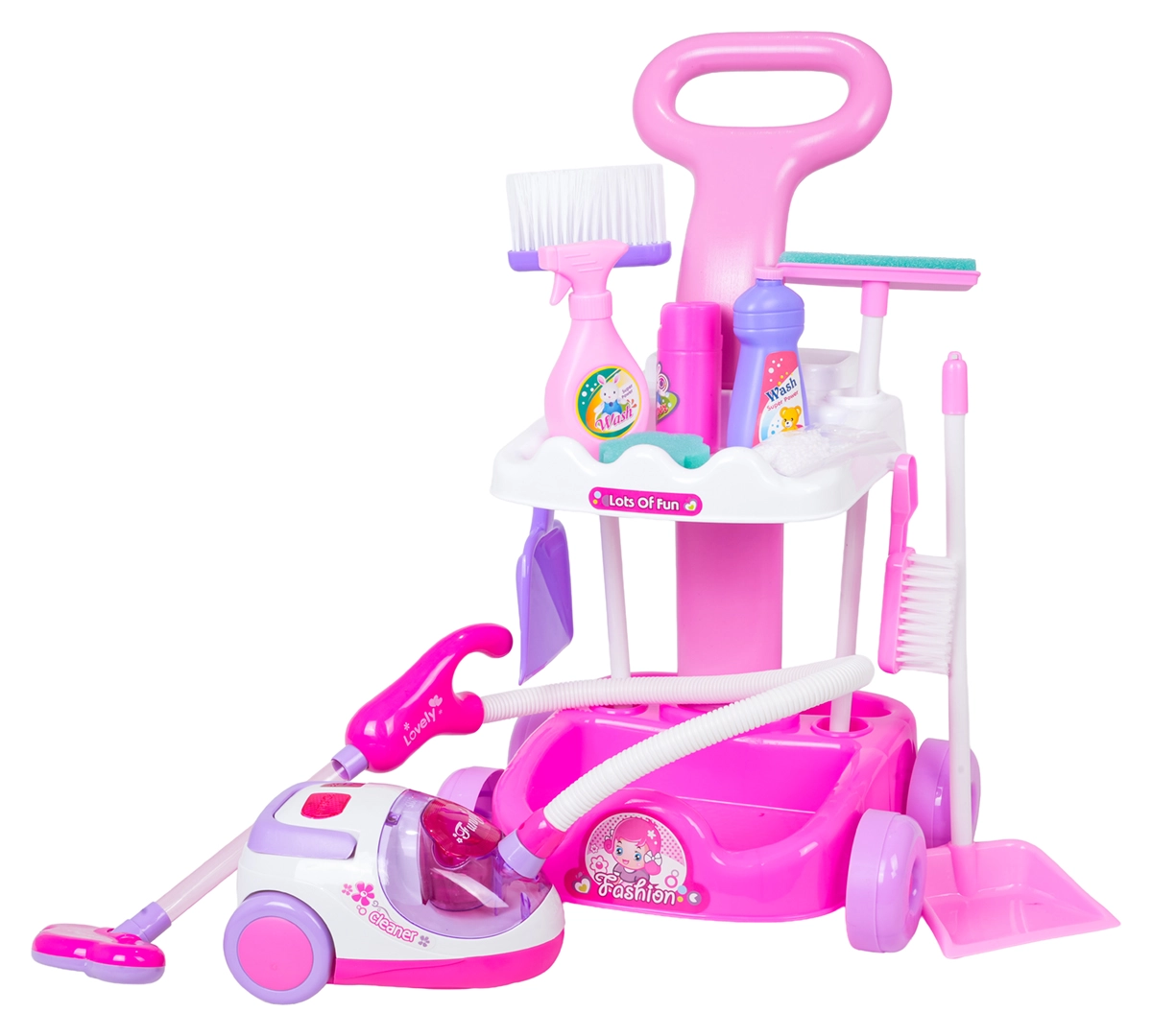 Veiciniet bērnu fantāziju un ikdienas rituālus ar rozā uzkopšanas ratiņiem, kas piedāvā visu, kas nepieciešams mazajiem palīgiem. Stabili ratiņi ar riteņiem ietilpina visus uzkopšanas piederumus, savukārt interaktīvais putekļsūcējs ar gaismu un skaņām piešķir spēlei autentiskumu. Kvalitatīvs, drošs plastmasas izpildījums košās krāsās ir ideāli piemērots bērniem no 3 gadu vecuma.