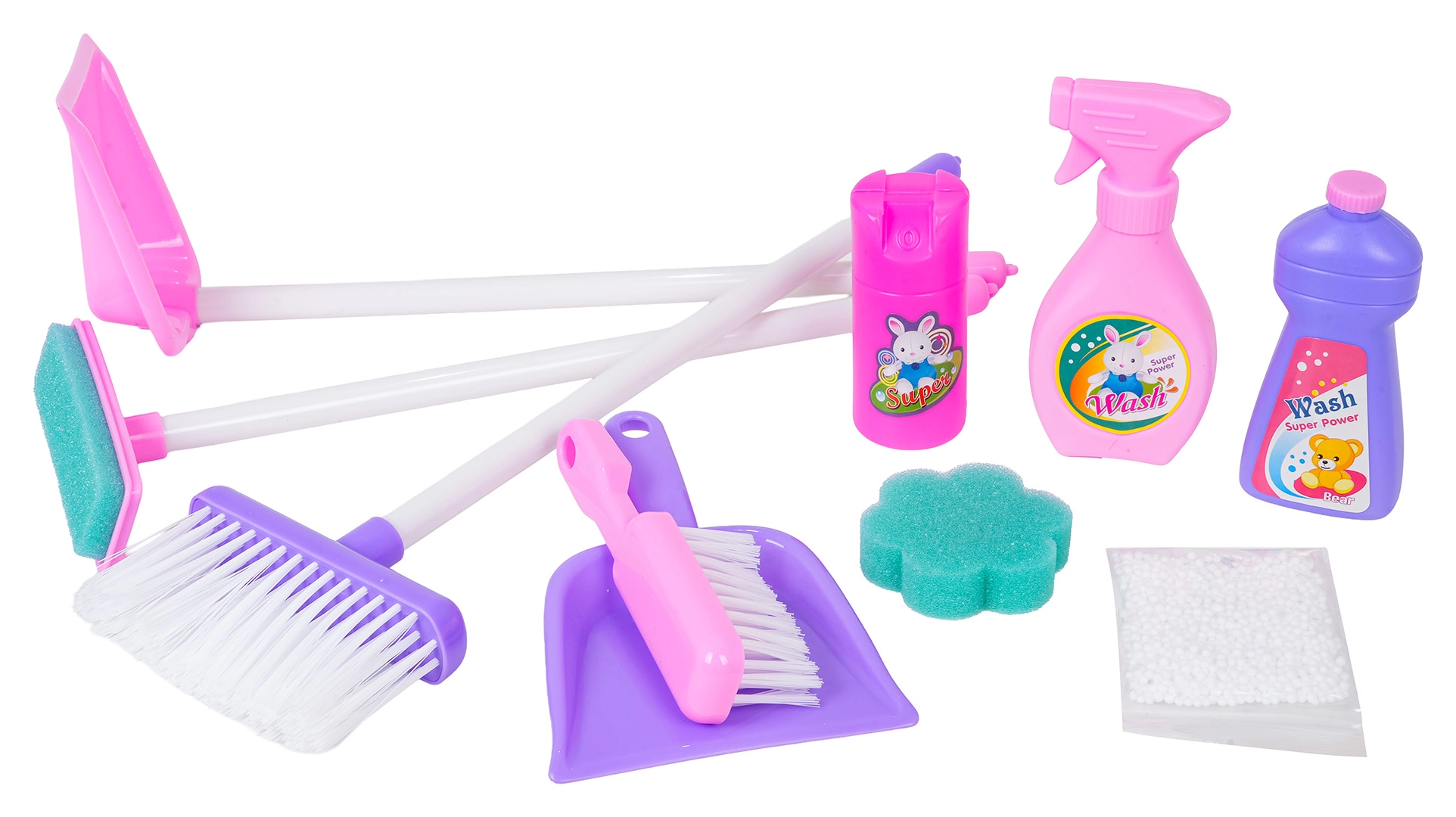 Slota, lāpstiņas, rokas slotiņa, logu tīrāmā gumija, sūklis un tīrīšanas līdzekļu atrises. Neiztrūkst arī putuplasta lodītes, kas paredzētas putekļsūcējam.