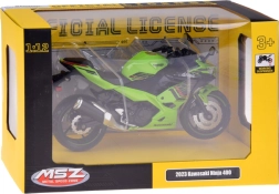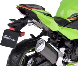 Kapotējums ar kontrastējošu grafiku, detalizēti bremžu diski, spoguļi un instrumentu panelis uzticami atdarina īsto NINJA 400. Lielisks papildinājums jebkurai kolekcijai.