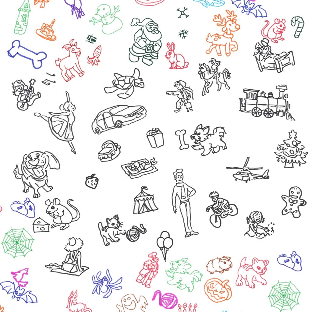 Komplektā atradīsiet 6 lapas ar 12 attēliem katrā – dzīvnieki, priekšmeti un sezonāli motīvi pārvelkšanai, krāsošanai un formu apguvei.