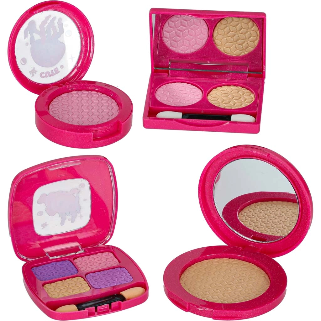 Ēnas un pūderi ir no krāsainām putām, bet skropstu tuša ir tukša – bērni var izbaudīt reālistisku spēli bez nosmērēšanās riska.