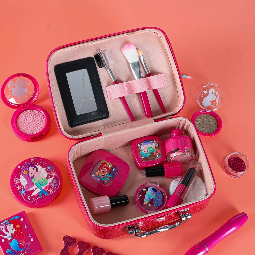 Koferītis ir viegls, izturīgs un, pateicoties spogulītim un pārdomātai organizācijai, katram rīkam ir sava vieta. Bērni apgūst pamatprasmes kopšanā, attīsta motoriku un krāsu izjūtu – un tas viss bez nepieciešamības pēc īstas kosmētikas.
