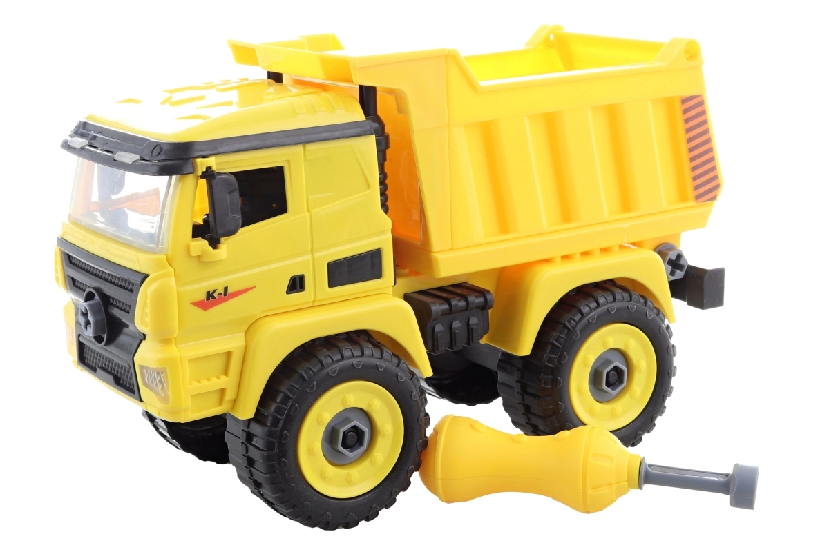Šis skrūvējamais pašizgāzējs bērniem piedāvā lielisku izklaidi un vienlaikus veicina praktiskās iemaņas. Ar komplektā iekļauto plastmasas skrūvgriezi bērni var izjaukt un atkal salikt atsevišķas daļas, trenēt roku–acu koordināciju un apgūt konstrukciju pamatprincipus. Rotaļlieta ir izgatavota no izturīgas plastmasas, un pateicoties noapaļotajām malām, tā ir piemērota maziem bērniem.