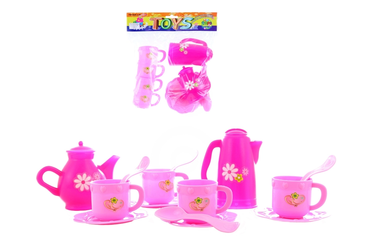 Mīlīgs rozā tējas komplekts ir ideāls bērnu tējas ballītēm un spēlei “saimniece”. Komplektā ir viss nepieciešamais pasniegšanai – 4 tasītes, 4 paliktņi, 4 tējkarotes un 2 krūzes. Izgatavots no viegla plastmasas, piemērots bērniem no 3 gadu vecuma.