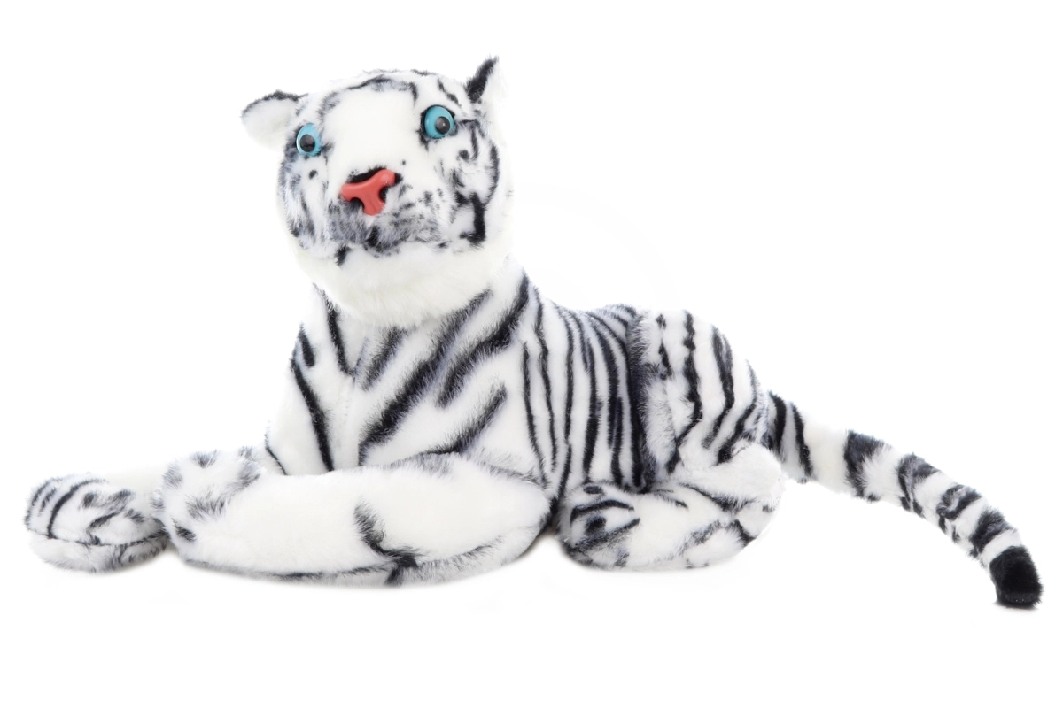 Atklājiet baltā tīģera burvību mīkstajā rotaļlietā. Šis lielais mīkstais rotaļdzīvnieks 57 cm garumā ir izgatavots no patīkama, mīksta materiāla, kas aicina pieglausties. Pateicoties neitrālajām krāsām, tas iederēsies jebkurā bērnu istabā un iepriecinās gan bērnus, gan vecākus.