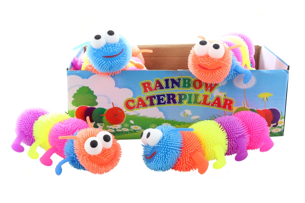 Izklaidzīgs gumijas kāpurs ar gaismas efektu bērniem no 3 gadu vecuma. Sazinoties vai viegli sitot, priekšējā daļā mirgo gaismiņa. Mīksta, birstēm līdzīga virsma veicina sensoro uztveri un sīko motoriku. Garums ap 16,5 cm, ideāli piemērots mazām bērnu rociņām.