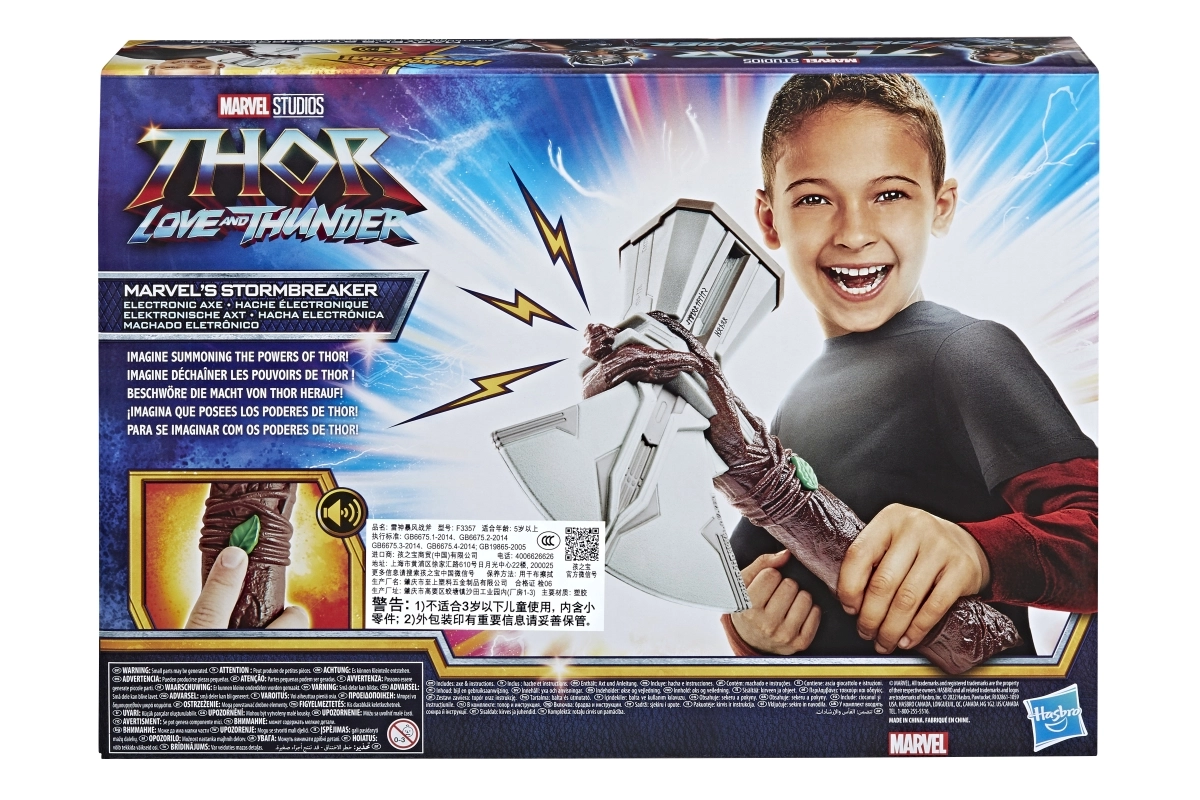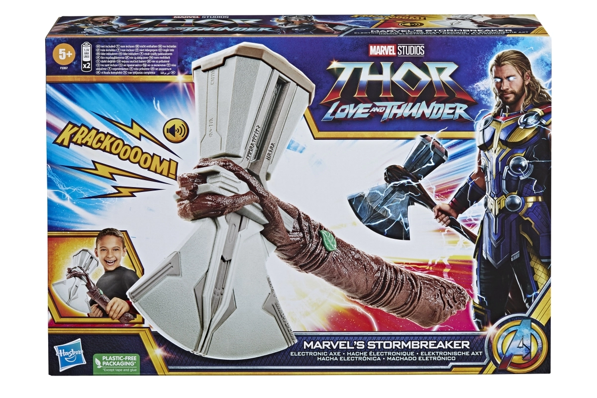 Izjūti AVENGERS varoņa spēku ar leģendārā cirvja Stormbreaker kopiju. Rotaļlieta iedvesmota no filmas Thor: Love and Thunder un sniedz bērniem un faniem autentisku pieredzi, pateicoties dinamiskajiem skaņas efektiem.
