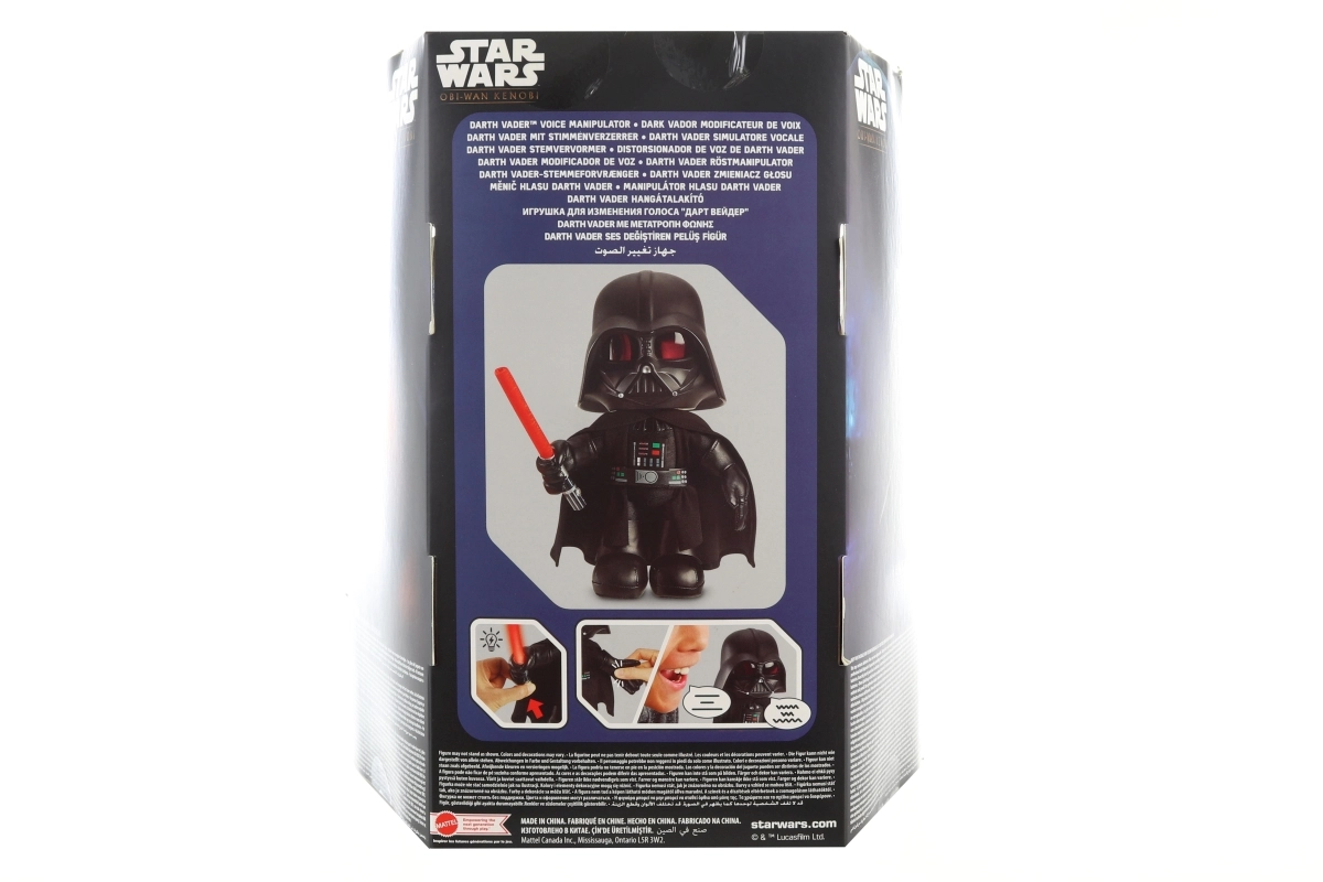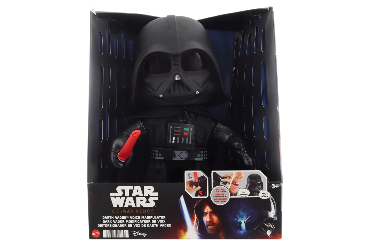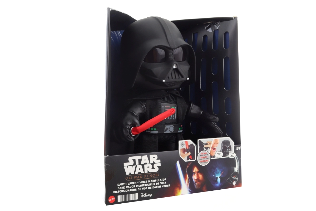Iemīļotais ļaundaris no tālās galaktikas ierodas kā kvalitatīva mīkstā rotaļlieta, kas iepriecinās gan spēlējoties, gan kolekcijā. Dārta Veidera tēls ir aprīkots ar spīdošu zobenu un balss modulātoru, kas rosina bērnu iztēli pilnā sparā. Vadība ir vienkārša – funkcijas aktivizē, nospiežot roku.
