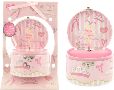 Šī elegantā mūzikas rotu lādīte ar balerīnu piedāvā ideālu vietu gredzeniem, aprocēm un citām sīklietām. Atverot vāku un pagriežot atslēdziņu, balerīna graciozi dejo spoguļa priekšā, un atskan patīkama mūzika. Pateicoties kompaktajiem izmēriem, lādīte viegli iederēsies uz naktsgaldiņa vai plauktiņa bērnistabā.