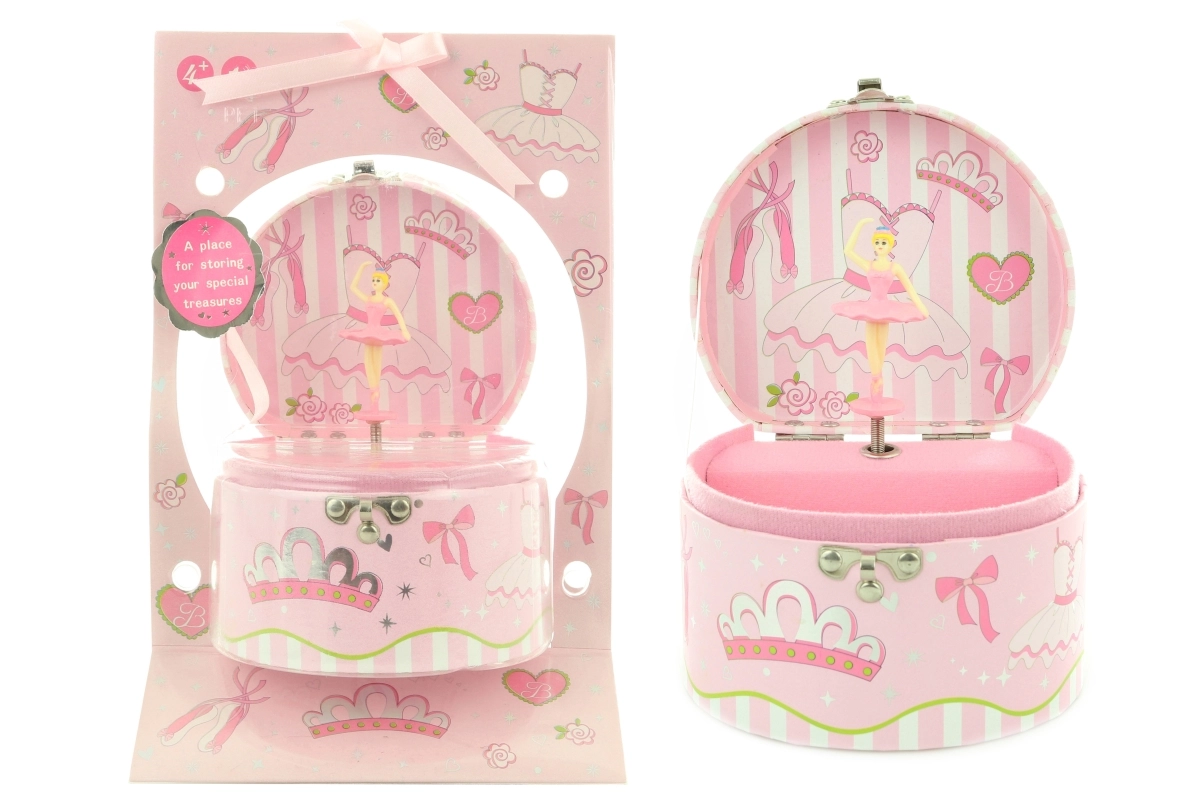 Burvīga mūzikas rotu lādīte ar balerīnu iepriecinās ikvienu mazo rotu mīļotāju. Pagriežot atslēdziņu, balerīna sāk griezties un skan maiga melodija. Iekšpusē atradīsiet praktisku spogulīti un vietu nelieliem dārgumiem. Skaista dāvana bērniem no 4 gadu vecuma, maiga melodija, dejojoša balerīna, kompakts izmērs.