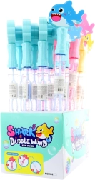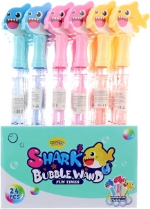 Izklaidējošs burbulētājs ar haizivs motīvu bērniem no 3 gadu vecuma. Pateicoties plastmasas izpildījumam, tas ir viegls un drošs, tam ir kompakti izmēri un tas piedāvā daudz krāsainu variantu. Ideāli piemērots spēlēm ārā, dārzā vai bērnu ballītēs, kur tas radīs daudz mirdzošu burbuļu.