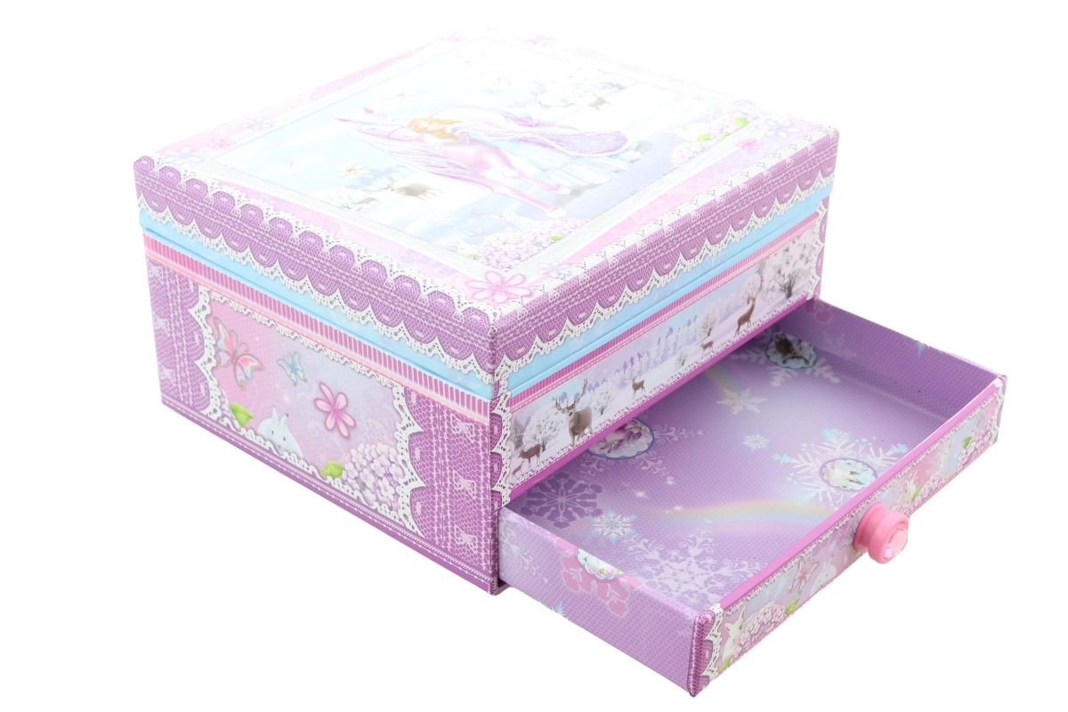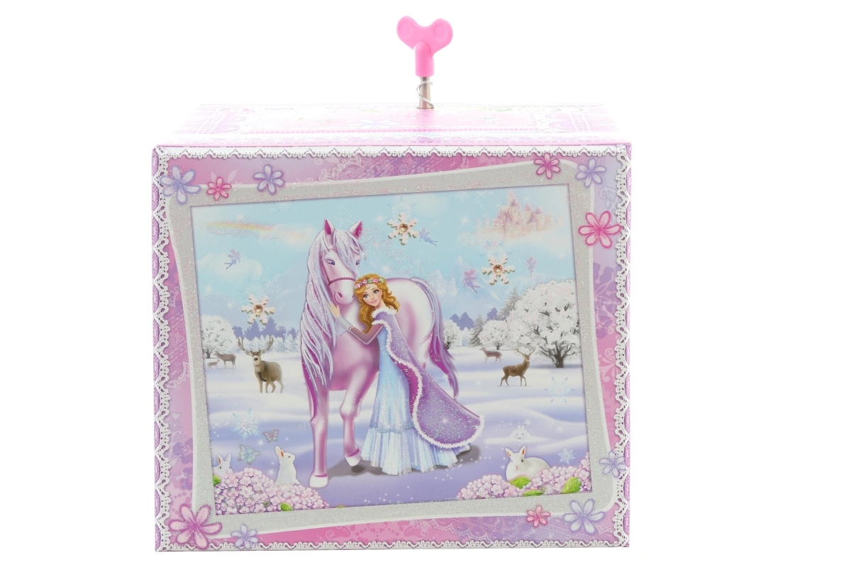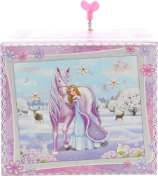 Šī elegantā mūzikas rotaslietu lādīte ar ziemas princeses un vienradža motīvu apvieno dekoratīvu izskatu un praktisku iekārtojumu. Pēc mehāniskā uzvilkšanas un vāka atvēršanas figūriņa sāk griezties, un skan melodija, radot pasakainu noskaņu.