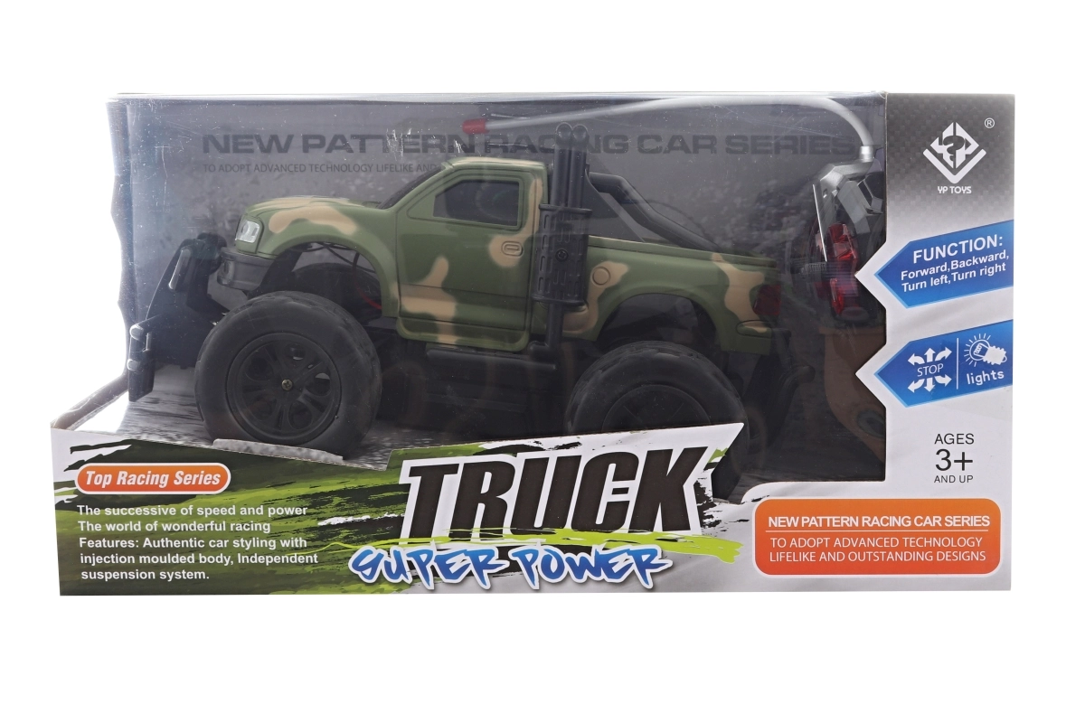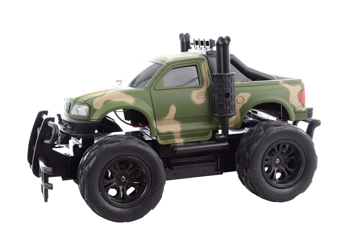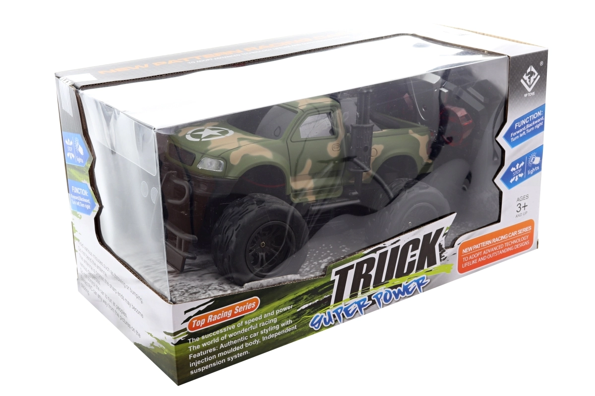 Ienirstiet off‑road izklaidē ar militāro RC džipu, kas izceļas ar maskēšanās dizainu, paaugstinātu šasiju un robustiem riteņiem. Pateicoties priekšējiem lukturiem, braukšana ir aizraujoša arī krēslā, bet vienkāršā tālvadība ir lieliski piemērota iesācējiem.