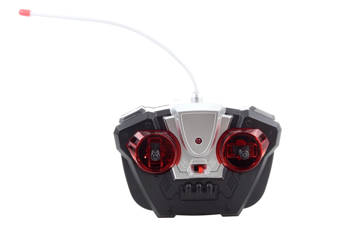 Divsviru pults ar pārskatāmu izvietojumu, LED indikāciju un izvelkamu antenu stabilam signālam ar darbības rādiusu ap 5 m.